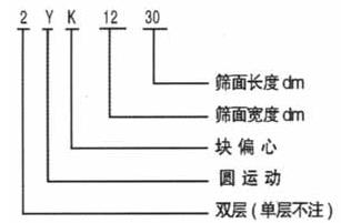 YK圓振動篩產(chǎn)品型號編制說明: