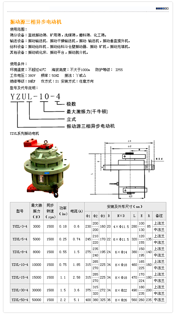 立式振動電機/震動電機使用范圍: